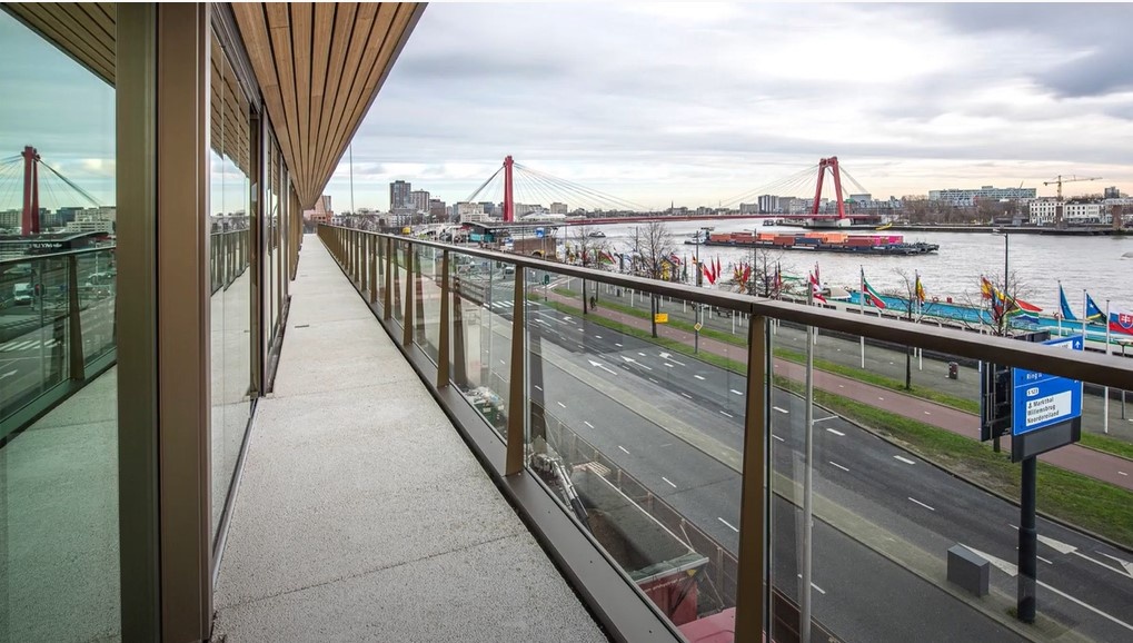 Hoog en droog. De Terraced Tower, die volgens sommigen tot de mooiste woontorens van Rotterdam behoort. Het uitzicht over de levensader van Rotterdam, De Maas is fenomenaal. En wij hebben in opdracht van Besix aan een nieuw stuk geschiedenis mogen meewerken, want die voorspellingen dureven we wel te maken. Meebouwen aan een monument van morgen is iets om trots op te mogen zijn. We hebben onder meer de galerijen mogen voorzien van die o zo innovatieve waterdoorlatende De Wado Drain® vloer. Met deze waterdoorlatende vloer is van natte voeten geen sprake meer. De vloer, die ook op leefdaken is toe te passen, is dun en lichter dan vergelijkbare oplossingen. De Wado Drain® vloer bestaat pnder meer uit een mengsel van gebroken grind, portlandcemen. En mooi meegenomen: de vloer is behalve waterdoorlatend ook nog eens slijtvast. De Wado Drain® vloer is een smeervloer en dus altijd passend te maken aan welke situatie dan ook. Bekijk ook even het prachtige filmpje van Besix!